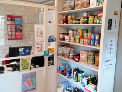 In unser Campingladen finden sie eine kleine Auswahl an Lebensmitteln, lokalen Bieren, Weinen, Lebensmitteln, Gerichten zum Mitnehmen, Eis, Wanderkarten und Toilettenartikeln.